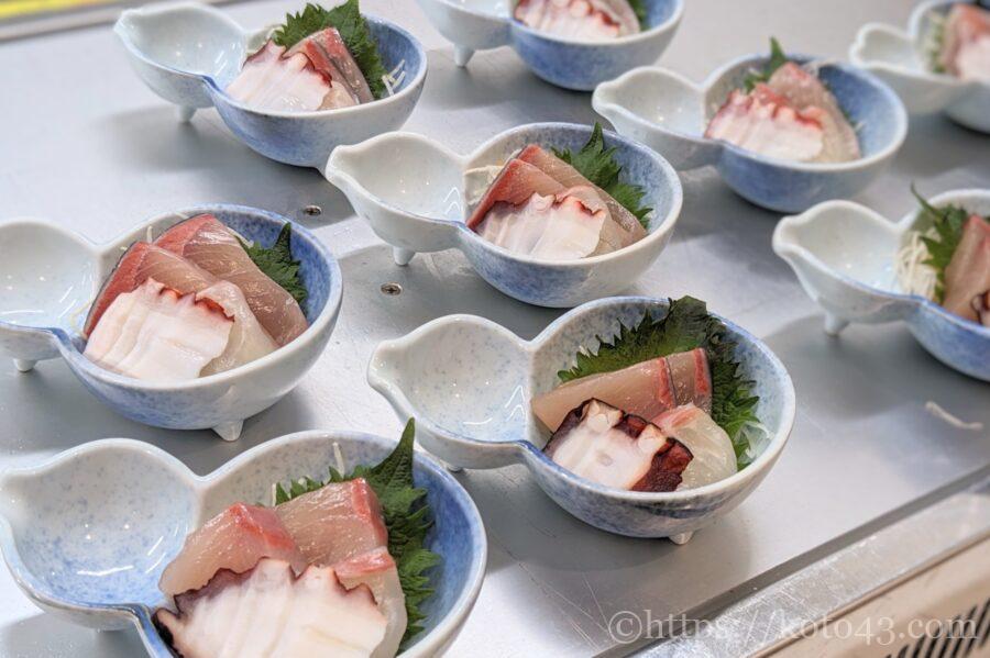 お席には一人一皿、イカのお刺身が配膳されます。