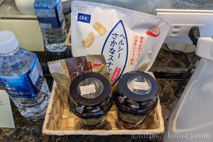 ミニバーのお菓子とコーヒーは有料でした。